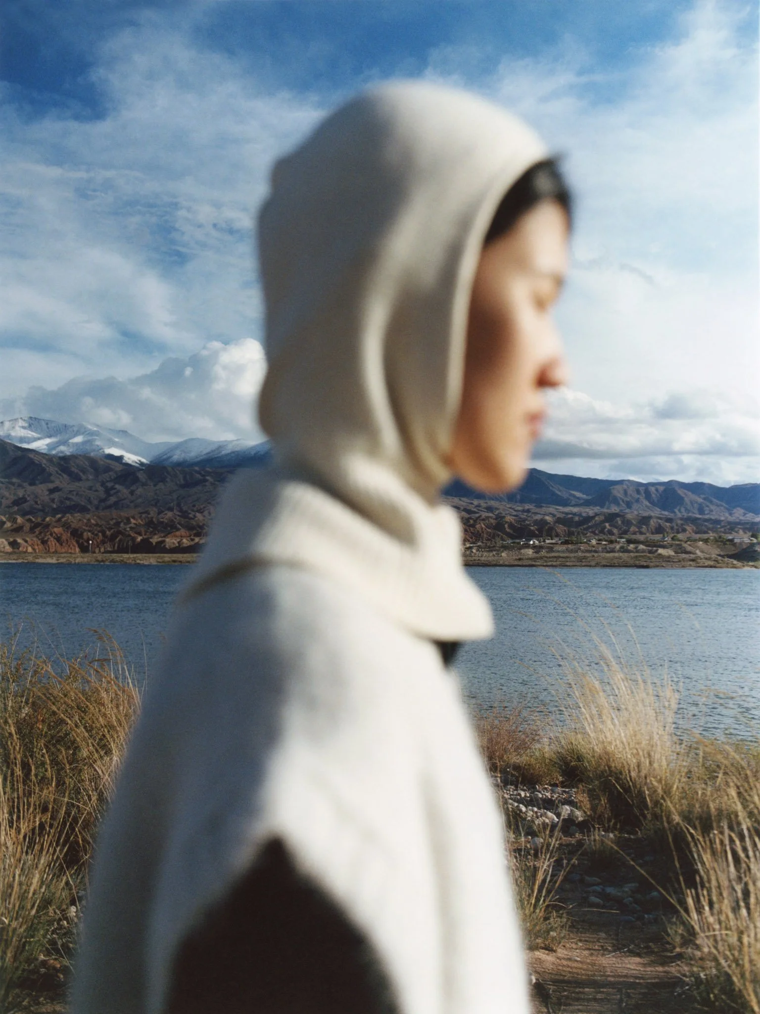 In our second edition of RUS Journals, we explore Kyrgyzstan through Anouk Nitsche’s lens, a land where vast horizons meet ancient traditions. Featuring Aselia Toktorova in her homeland, this edit weaves together the raw beauty of the landscape with reflections on identity and the craftsmanship of knitwear as a tactile form of storytelling. As both muse and guide, Aselia bridges the contemporary and the timeless, inviting us to consider the ways in which self, artistry, and place inform one another.